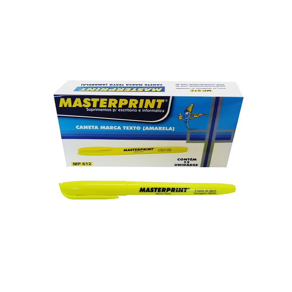 DESCRIÇÃO: - Caneta Marca Texto - Marca: Masterprint - Cor: Amarelo - Caixa: Com 12 Canetas