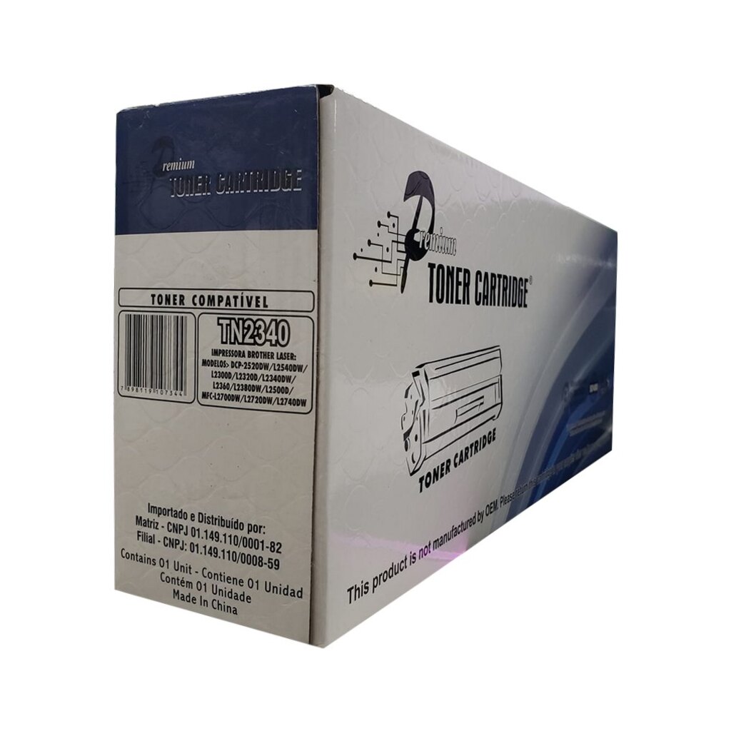 - Cartucho de Toner Brother TN2320, utilizado nos seguintes equipamentos Brother: HLL2340D L-2320D, HLL2360DW L-2360DW, MFCL2740DW L-2740DW, MFCL2720DW L-2720DW, MFC-L2700DW MFCL2700DW L-2700DW, DCP-L2520DW DCPL2520DW L-2520DW, DCP-L2540DW DCPL2540DW L-2540DW.